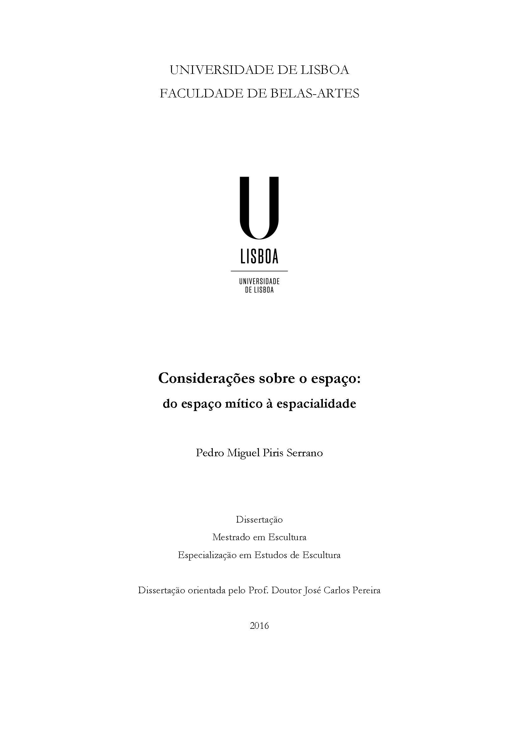 The objective of this work lies in the issues of space in sculpture. It crosses a path through the various territories of modernism until postmodernism, evoking those who have had the most influence for an awareness and perception of space and the place of sculpture up to the present day. This dissertation addresses sculptors such as Richard Serra, Robert Morris, Robert Smithson, Anish Kapoor, Henri Moore, Vito Acconcci, among others artists whose work refers directly to space as main motto. In order to obtain a better understanding of this subject this investigation attempts to define the concept of space, in its mystical and physical relationship, and than evolving for technical references (construction, installation, exposition, among others), problematizing the direct relation with the body, with the object and with the space. In this way, we delimit a journey through the twentieth century, passing through the emergence of the happening (in it´s performance consecration), of constructivism, minimalism and site-specif and, as clutching units, references to cubism, environment, unism, process art and land art