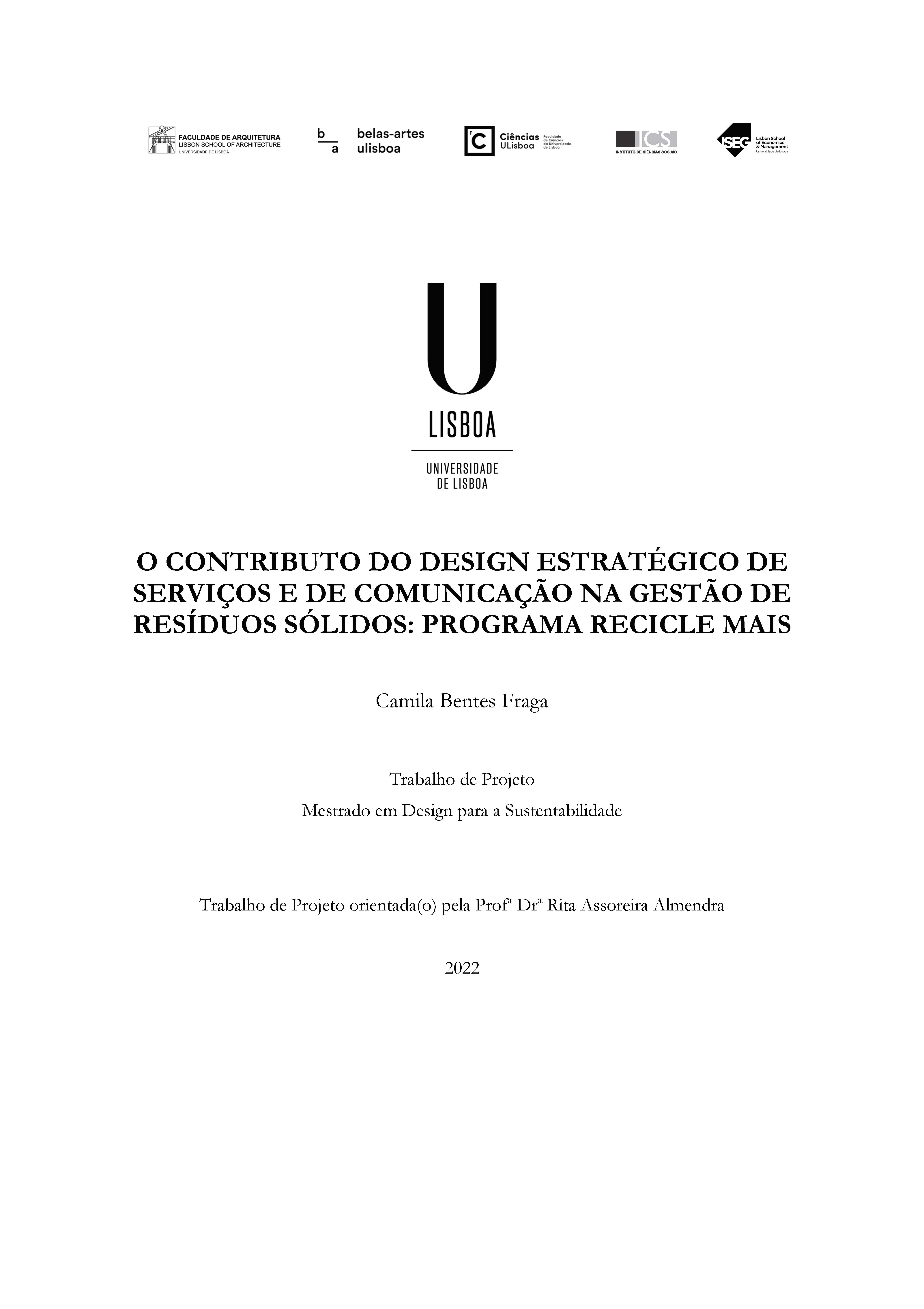 This research focuses on the contributions of the strategic design of services and communication in Solid Waste Management (GRS) for recycling. The investigation was elaborated as a response to the scenario regarding initiatives for the disposal of recyclable waste available to the population of the city of Belém do Pará, in Brazil. The object of study is a local GRS initiative, the Recicle Mais Program (PRM), which has been active in the region since 2016. The study brought together a theoretical perspective and participatory research, addressing service and communication design themes, sustainable development and the circular economy. The project gathered knowledge about the services based on participatory methodologies where it was possible to gather and cross-reference data on the logistical, administrative and communication challenges inherent to the services, to draw up a set of guidelines, segmented by public: voluntary deliveries in ecopoints and collection at the door (residential and business), aiming to enhance the reach and quality of the services proposed by the initiative. An extremely relevant point of the study is the recognition that carrying out a strategic process of design investigation, when it involves activities aimed at reflecting on services, together with generative processes of ideation, are essential for quality and strategic adequacy of solutions that we propose as designers. Another relevant point was the development of auditable guidelines for improving the processes of the PRM services, combined with the relational design through a blueprint of the services, which enabled the strong construction of the relationship between the proposed improvements and their impact on the user's journey. No less important was the proposal of planning cycles for communication, so that the population has ever more access to services and to the circular economy and entrepreneurship chain that the program impacts. We hope that this investigation and its consequences can have a real impact on GRS logistics in Belém do Pará.
