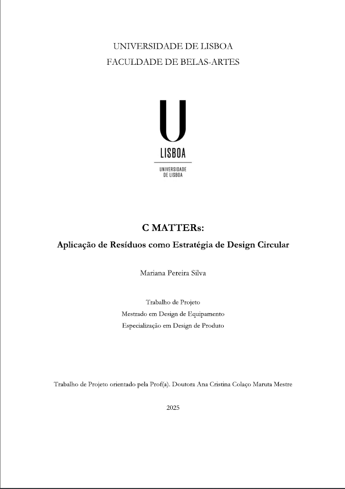 Dissertação de mestrado, Design de Equipamento, especialização em Design de Produto, 2025, Universidade de Lisboa, Faculdade de Belas-Artes.