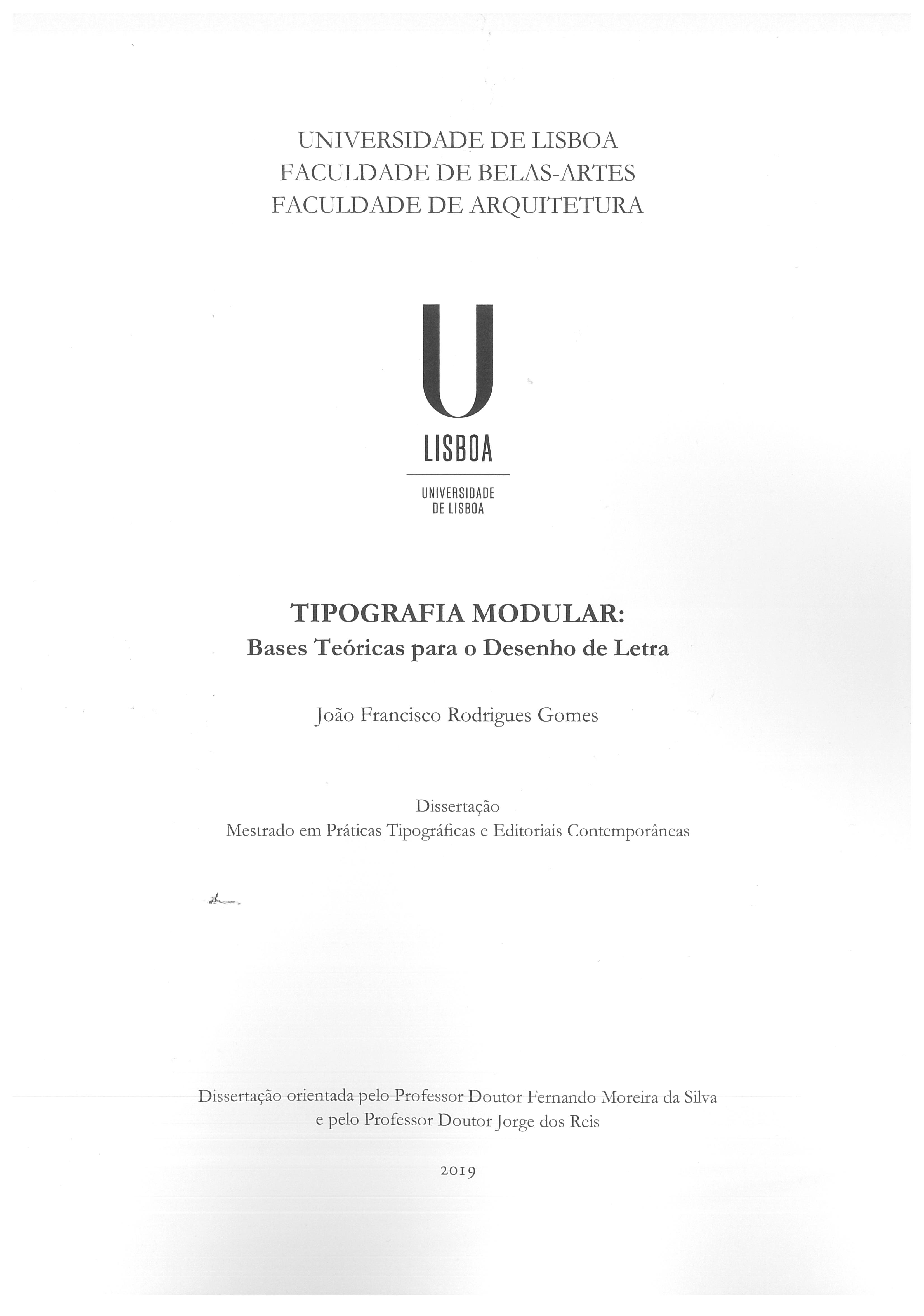 Modular and Geometric Type Design, commonly called Modular Typography in a simplified and unspecific fashion, is an area of activity within Typography which, thanks to the technical ease offered by digital media towards its exploration, enjoys appreciable popularity both as an expressive medium in contemporary Communication Design and as a tool for teaching the theoretical principles of Typography and the practice of Type Design themselves. However, and unlike Conventional Lettering & Type Design, the cohesion of the critical mass that follows the popularity of this area is not sufficient for it to be taken up scientifically and systematically by those who partake in it or by their peers. This theory deficit expresses itself mainly in two interrelated facets: Lettering & Type Design Theories and anthologies, which frequently refer to principles essential to Modular and Geometric Type Design but stick mainly to Conventional Lettering & Type Design or, when they do focus on the former, overemphasize more conventional specimens, and Typographic Taxonomy systems, which do not contain the categories needed for classifying modular fonts according to their structure and the Lettering & Type Design theories which originated them. Our main goal is, then, to approach this lack of specific studies on this practice and its categorization and, as such, we will seek to divide it into its main components, so as to complete a State of the Art which, in its essence, is composed of a corpus of several practical examples and a few theoretical notes which sometimes accompany them. Thus, in order to better explain the processes which might have been intuitively used by its authors, we will focus on the study of preexisting Typographic Taxonomy systems and Modular Lettering & Type Design Theories, as well as of all the structuring elements of typographic modularity, such as modular geometry and typographic grids. As for our specific goals, we will take to the task of codifying a Theory of Modular and Geometric Type Design and an extension to a pre-existing Typographic Taxonomy system, which will be tested with several case studies. With this contribution, we hope to benefit all those who teach, learn and/or practice Modular Type Design, as well as all communication designers in general and who may potentially resort to their work, or who may wish to enter that profession