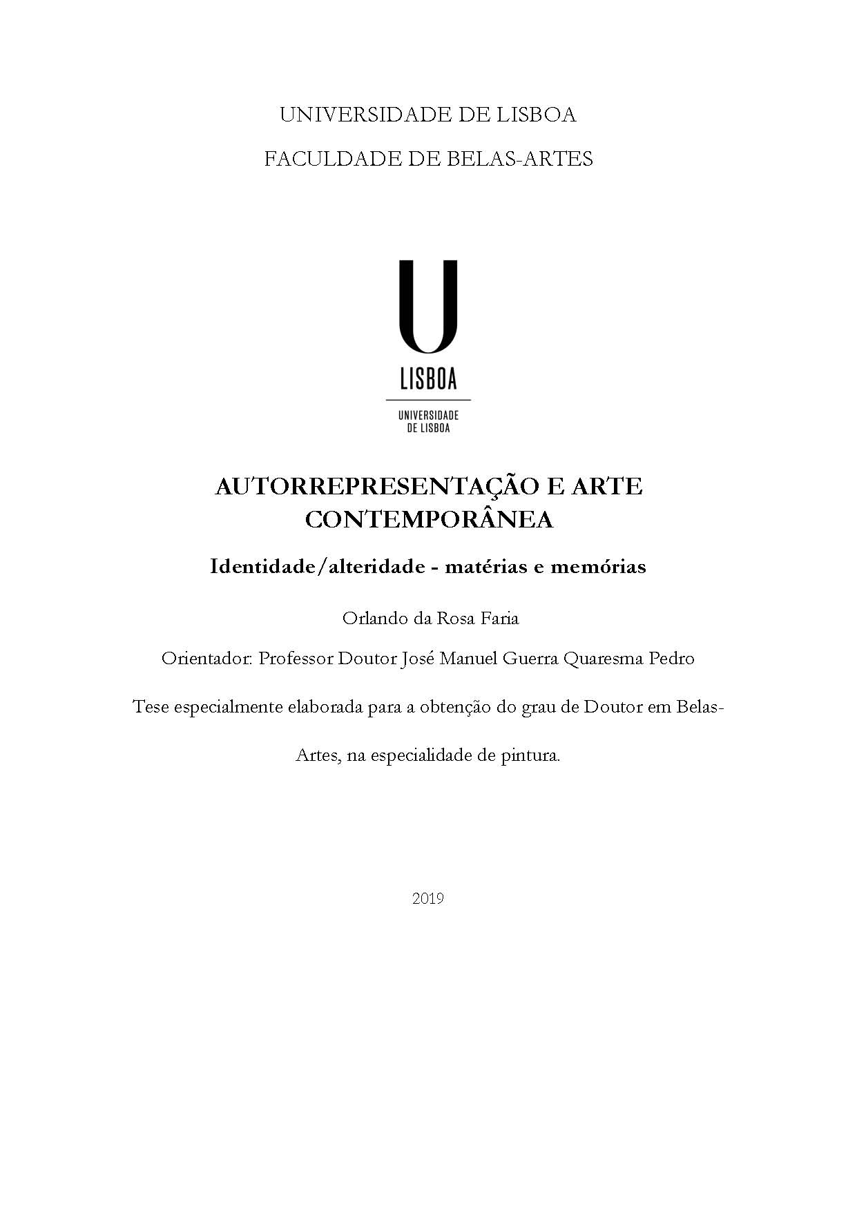 This investigation is included in the doctoral program in Plastic Arts, specialization in Painting, from the Fine Arts School in the Lisbon University. It intends to investigate, in a theoretical and practical way, the personal identity in contemporaneity. The text tries to discern several aspects relating to different questionings and perceptions about the «self». Its main purpose is to analyze how those perceptions have repercussions on my creative process, specifically in relation to the self-representation, starting from the series of paintings of self-portraits named Heads: autopsy of a pictorial process. The text presents how the individual, with a stable feeling of his identity and place in the order of things; centred, unified and equal to himself – that emerged in the Modern Age – is being rearranged in our days, and how those circumstances interfere and taint the theoretical and practical fields, and relate to the exploratory /creative process. In other words, the point is to divert the attention from what it would be the «true essence» of the existential subject, to invest in the permanent learning process of new forms of being, by means of the egological-hermeneutic synthesis that allows the individual to re-elaborate his subjective contents and, thus, to differentiate his own singularity, though considered in a different way, by the intensification of the processes of social interaction; which demands to absorb the plasticity needed to the actualizations of the multiple sides of the self, in an unique, multiple and integrated time; to internalize the subject that builds himself from a feeling that assumes the identity as multiplicity, and to find, through the art, new meanings for himself and for life. These are subjective approaches that permit improvisations, ruptures and fragmentations, born in the dialogue between memory, the mentalities of the paintings and the world, the body and its shadow, and the travels. This facilitates the frictions, the conflicts and the differences, in on hand, inherent to the creation and the artistic doing; on the other hand, equivalent to the personal and interpersonal processes of leaving the centre, diversification, dilution and multiplicity that characterize the «new» human condition, named post-modern.