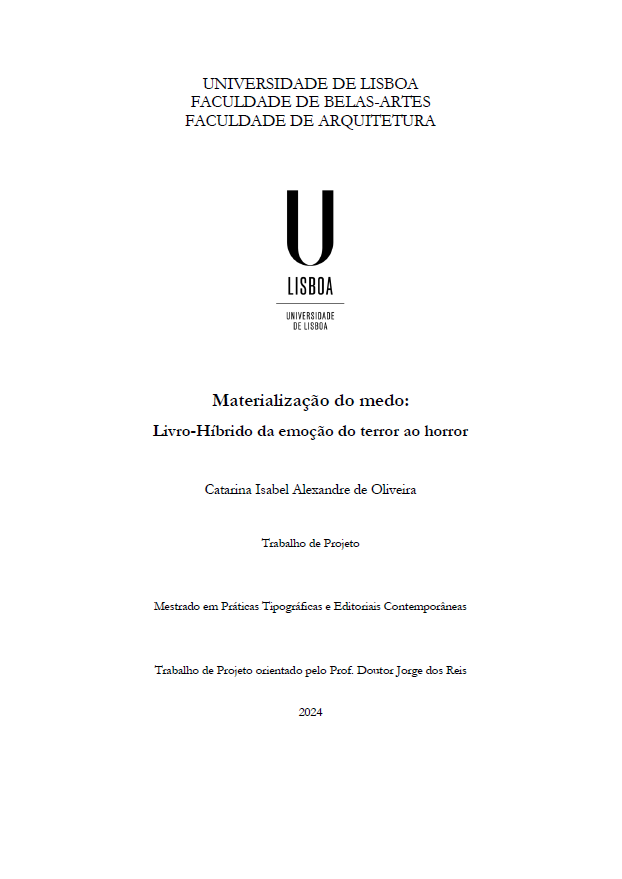 This project aims to investigate the concept of hybrid book and their ability to provide immersive emotional experiences to the reader; that is, it seeks to delve deeper into what these conception methods are and what is considered to belong to this genre of book, namely the interaction between the reader and the book as an object. Creating a reading that is not merely mental but also visual, which can promote or create emotional experiences. Thus, the book is conceived as an immersive experience, capable of establishing a deeper emotional connection with the narrative content. In line with this theoretical framework, the aim of the practical part of the project is to adapt an existing literary work to a hybrid book format, integrating narrative and graphic elements. The aim is for the book to offer the opportunity for interaction, requiring the reader to take action as well as process and experience, addressing the theme of terror, with a focus on the fascination caused by fear, explored through the narrative. Of the emotions most explored in this genre, fear is one of the most frequent. Horror stories exert a significant impact on readers' imaginations while simultaneously eliciting feelings of dread and attraction. In this context, the anthology of fear presents itself as a pertinent approach, allowing the gathering of different authors and styles that explore the theme from different perspectives. Through experimentation with narrative methods and their application to hybrid books, we seek to offer the reader a unique experience that differs from conventional reading. This approach aims to create an immersive environment, capable of provoking intense emotional reactions and physical sensations, transforming the act of reading into a sensory and emotionally engaging experience
