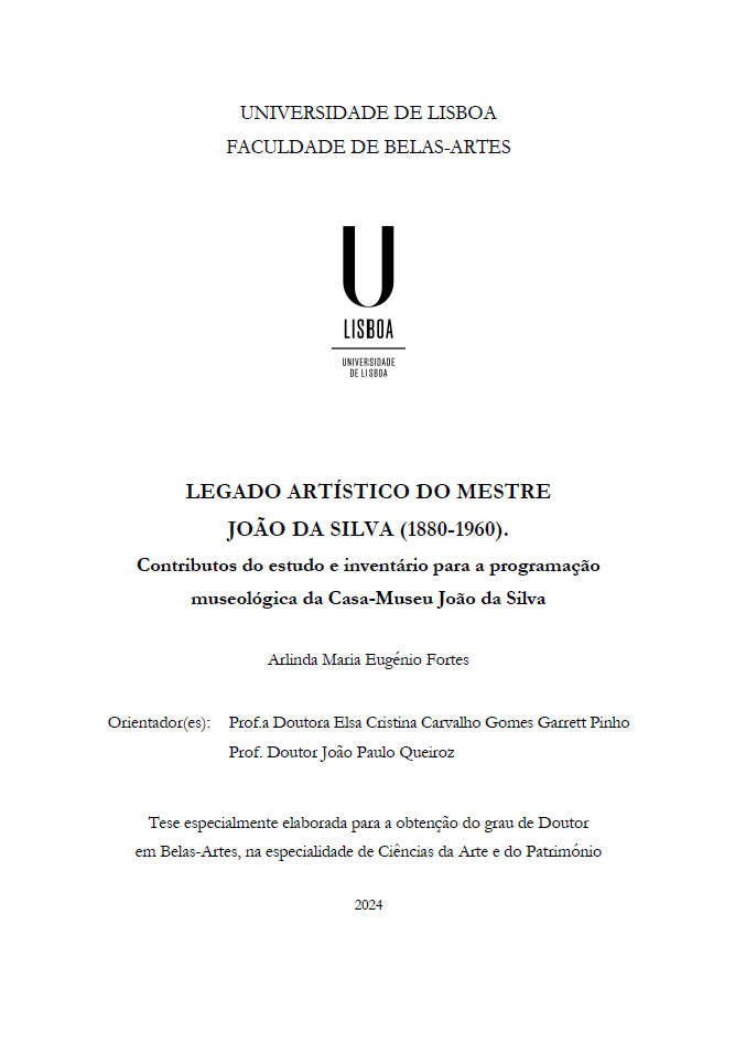 The present doctoral study, titled “The Artistic Legacy of Master João da Silva (1880–1960): Contributions from the Study and Inventory to the Museological Programming of the João da Silva House-Museum”, aims to reclaim recognition for the sculptor João da Silva, who has been relatively overlooked by Portuguese art historiography. Funded by the Sociedade Nacional de Belas-Artes (SNBA) over three years (2018-2021), the study involved the creation of a museological inventory of the João da Silva House-Museum (CMJS) collection, in accordance with national standards and legislation. This technical process encompassed 2,933 artistic objects, enabling the documentation of previously unknown works and providing a comprehensive perspective on João da Silva's artistic production. Based on an analysis of the history of the construction of the residence, studio and exhibition gallery, as well as the museological inventory, a proposal for museological programming was developed for the CMJS. This proposal seeks to return the house and its collection to public access and to the national artistic and cultural scene, aligning with the sculptor’s testamentary wishes and establishing a cultural space equipped with museological functions. Although the current designation of CMJS does not directly reflect the testamentary wishes of João da Silva and his wife, who envisioned it as a museum, it is understood that this designation incorporates aspects that reflect the uniqueness of its architectural heritage, preserving the living and working environment of the sculptor while maintaining and exhibiting his artistic legacy. Furthermore, a proposed management model for the CMJS was presented, advocating for its autonomous administration to address the need for a clear separation of powers and assets between the SNBA and the CMJS, given their distinct missions and objectives. Nevertheless, cooperation between the two institutions is recommended. The study also extended to a proposal for a biennial cultural programme for the CMJS, aiming not only to open the CMJS to the public but also to invigorate the cultural activities to be carried out within the space