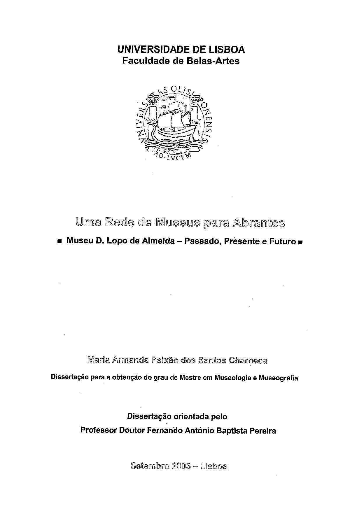 Tese de mestrado em Museologia e Museografia, apresentada à Universidade de Lisboa, através da Faculdadede de Belas Artes, 2006