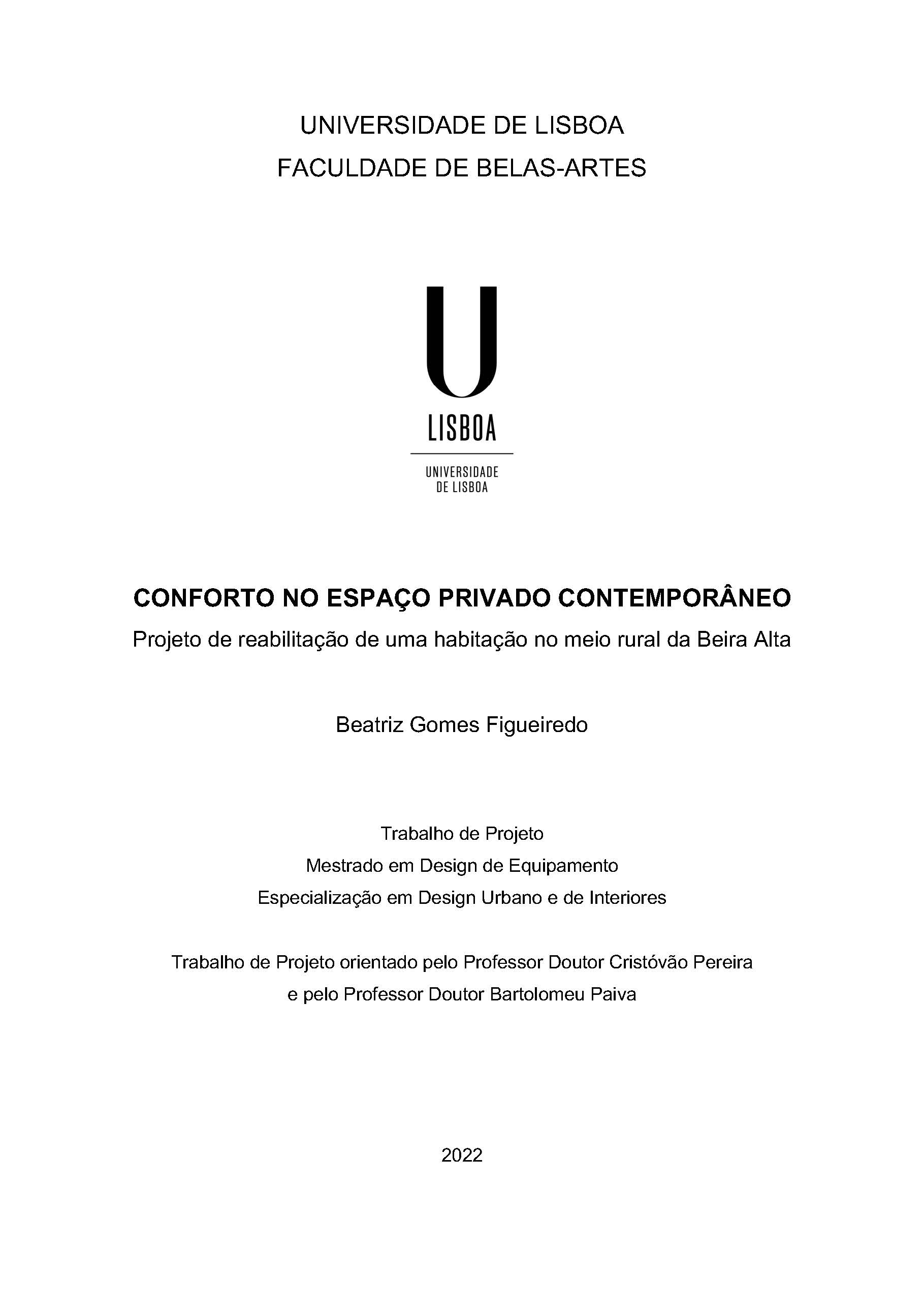 The present project work focuses on the theme of comfort in the contemporary domestic space in a rural environment, to the panorama of the interior of rural homes in the Beira Alta region of the 20th century. Thus, it is important to recognize the contribution of the role of Interior Design in the housing rehabilitation project. In this context, we will address the issues around the dynamics of rural housing in the Beira Alta region throughout time, taking into account aspects such as the Portuguese Popular Architecture and the way of living, contrasting them with the present day. Understanding these will allow us to explore the human experience in the private space in several domains: the psychological and the symbolic. Housing rehabilitation is, in this aspect, recognized as a project that prioritizes and contributes to the valorization of local identity and memory, as a current challenge that allies the Interior Design to the architectural project, given the demands of current times, which have been changing the ways of living and, consequently, the interior of the houses. Gestosa, a village in the Dão region, is the setting where the study and project are developed. The evolution of the dynamics of housing in the area will be explored, given the fact that today there is an increasing demand for the rehabilitation of the pre-existing houses in order to return to the quiet and rural environment of the village. Facing the contemporary scenario marked by fugacity and people's demands, we will try to demonstrate the relevance of the integration of the Interior Design project in the execution of a rehabilitation project. Therefore, it will be emphasized the designer's contribution in solving problems associated with old housing, as well as how it contributes to the promotion of human comfort in current times.