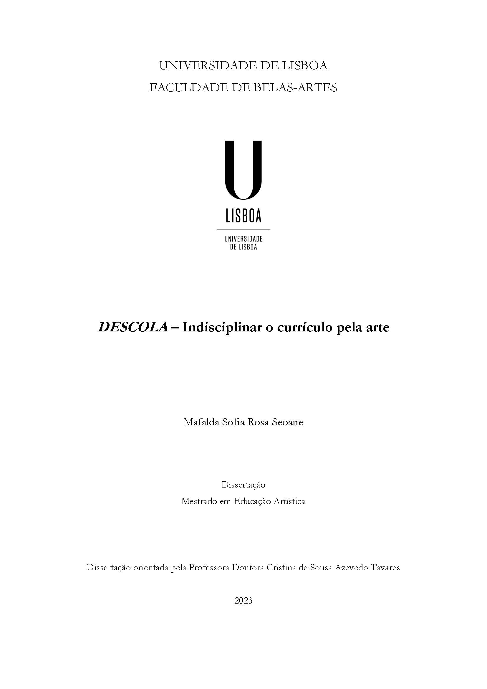 Educação artística Educação pela arte Relação arte e educação Escolaridade obrigatória Perfil dos alunos Pensamento crítico Projeto Descola