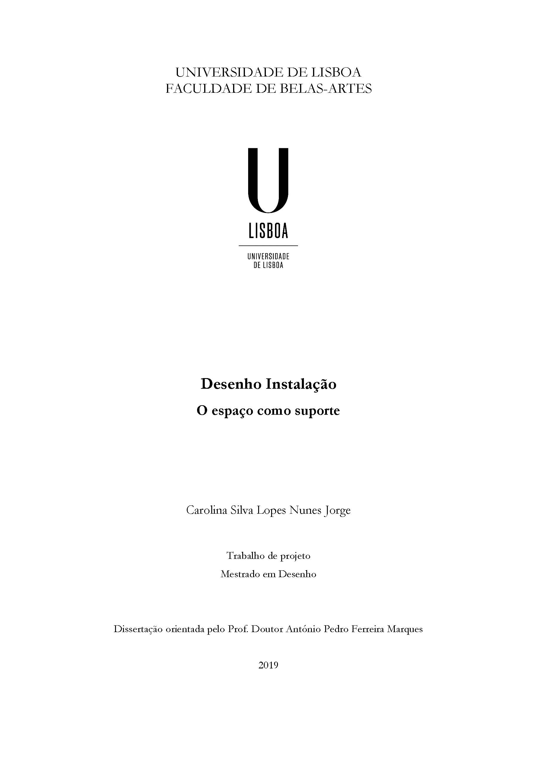 The present work is based on this framework of change, starting from the methodical study of the potential of space as a support for drawing. Through the analysis of several artists who explore Drawing Installation, as a theoretical foundation based on the historical context of Installation Art, it was possible to define the basis of a project developed in this domain. The results allow us to conclude that space as a support increases the potential for traditional drawing practice in two-dimensional physical supports, contributing to a new way of thinking.