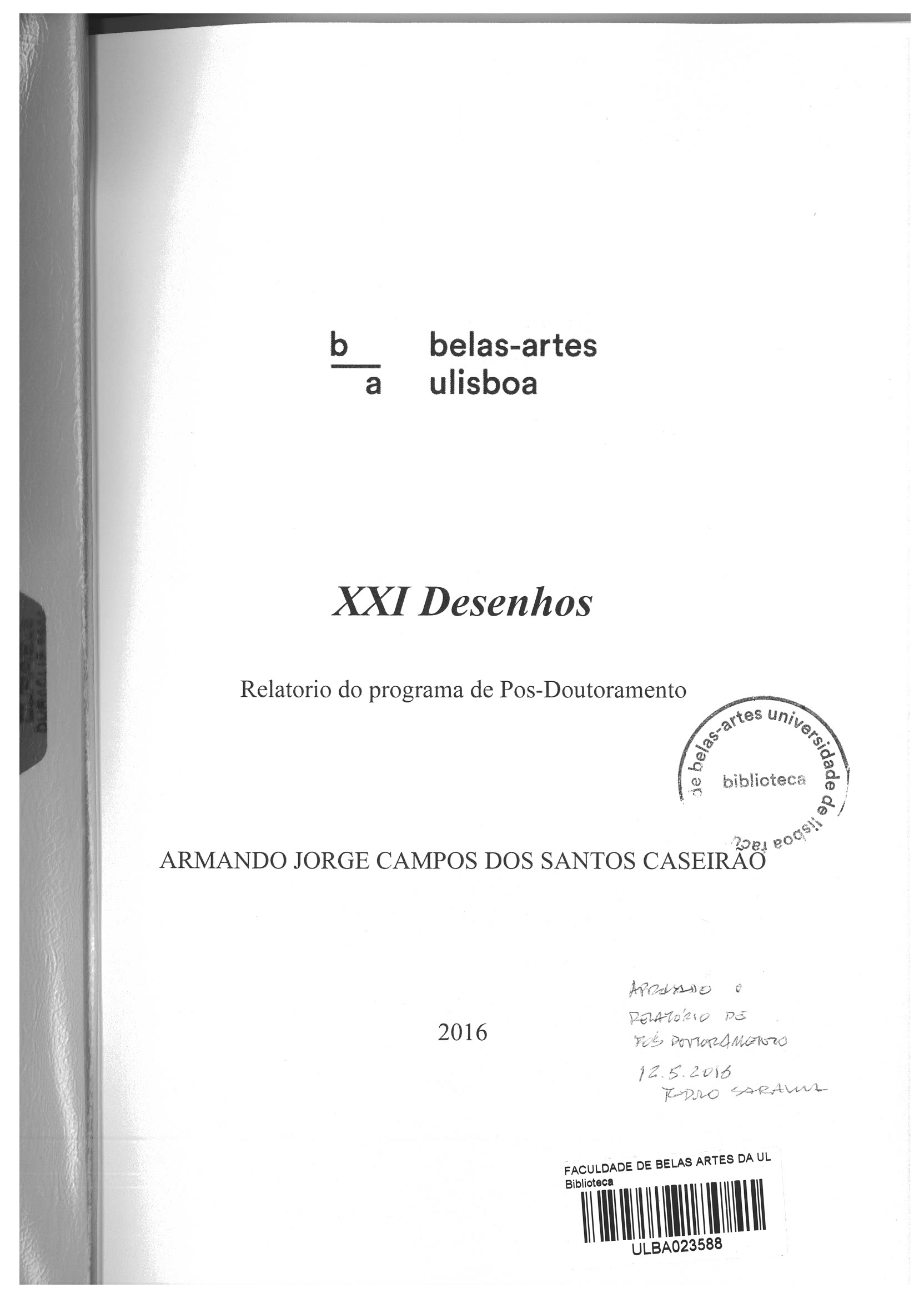 Relatório de Pós-doutoramento, Desenho, Universidade de Lisboa, Faculdade de Belas Artes, 2016