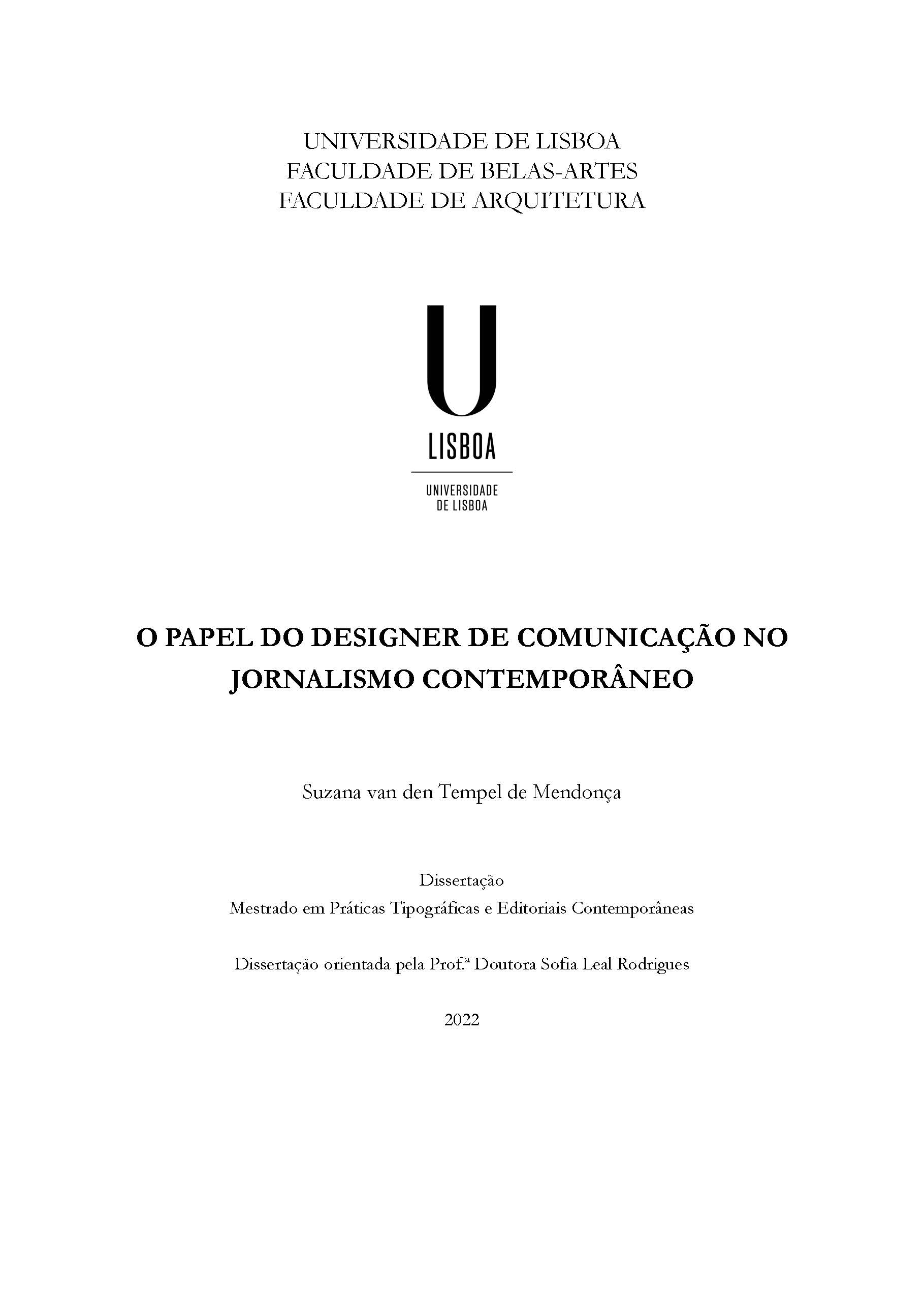 The role of designers in print and digital newspapers has evolved as new medias emerged in the communication industry. The current scenario is of mass information consumption over a number of diferente platforms. Visual and digital forms of news presentation are being favored, moreover a different sense of diversity has sprung in contrast to content previously seen in traditional newspapers since minority groups are being able to voice their opinions through many digital outlets and newspapers are being forced to adapt. This research discusses what it is to be a communication designer within this context and explores the perception of designers in the field. The aim is to determine if designers have active and critical positions or if they have passive roles in this specific media. The research is especially important due to the critical climate of contemporary journalism in the mist of continuous evolution of the industry and the transformation of the professionals involved in it. The study was conducted first by a literary review and secondly by interviewing journalists and designers working in digital or print newspapers in Brazil and in Portugal. Through the interview analysis it was discovered that designers are transitioning between having to be more active participants of the construction of content as well as still providing design projects in a passive model. Journalists and designers are collaborating in a more holistic approach to elaborate news and that results in a mature role for the designers. However more work has to be done to ensure that designers have enough time and recourses to branch out to other critical jobs in the field such as product design and strategy design. Since the newspaper industry suffers with funding issues the result is overworked staff, with multitasking roles that inhibit other forms of active design roles