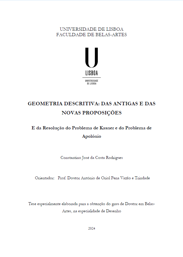 Todas as Disciplinas têm um valor científico outorgado, passível de transformação diacrónica face às mutações sociais que impactam a Educação e a Ciência. A Geometria Descritiva ilustra esta realidade, tal como damos a conhecer ao longo deste estudo, expondo testemunhos que apontam em sentidos opostos, seja em consonância ou em recusa sobre o estatuto de Ciência, argumentando-se a capacidade ou a incapacidade de alcançar conhecimento, respetivamente. O quadro científico que desenhamos conduz-nos ao estudo da problemática em torno da proposição, em sentido lato, um conceito presente na literatura mais antiga da Área Científica, mas raramente tratado na atualidade. Com o intuito de esclarecer e validar os estatutos de Disciplina e de Ciência que conjeturamos para a Geometria Descritiva, e ainda não estabelecidos formalmente por parte da Academia, partimos da tese que admite a edificação de novas proposições e, por conseguinte, é passível de inovação e desenvolvimento. Neste âmbito, elegemos tratar antigas e novas proposições em Geometria Descritiva, dirigindo a nossa atenção, primeiramente, para o discurso disciplinar em torno do objeto de estudo e da circunscrição do Desenho na resolução de Problemas Geométricos e, para alguns conceitos, tais como: algoritmo, aplicação, aporismo, computação, épura, exatidão, precisão, problema, projeção, proposição, rigor, solução, subproblema. Segundamente, tratamos o Desenho enquanto resolucionador de Problemas e indagamos antigas e novas metodologias de investigação, proposições, categorias de Problema e solução, que aplicamos a um conjunto de antigos e novos Problemas Geométricos, que propomos e resolvemos, entre eles o de Kasner e o de Apolónio. Nas conclusões destacamos a resolução de alguns problemas estabelecidos como irresolúveis, tal como o de Apolónio com o emprego de curvas cónicas planas, segundo os princípios canónicos, a possibilidade de se edificarem novas proposições em Geometria Descritiva e a ratificação dos seus estatutos de Disciplina e Ciência, através do Desenho e das Belas-Artes.
