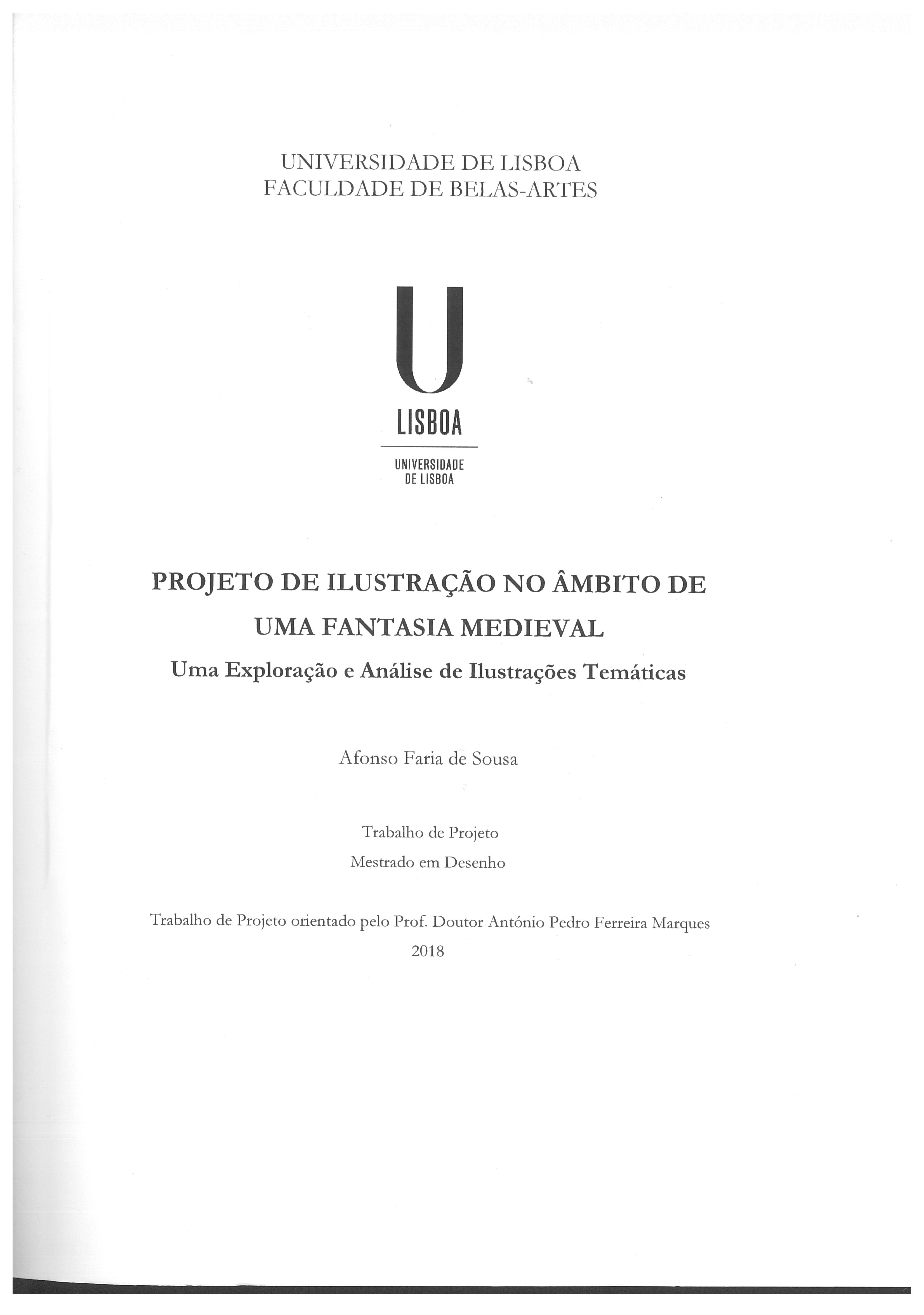 The project in question is intent on presenting a set of drawings, accompanied by a report of their conception and respective analysis. Its underlying purpose, being that of building the groundwork for a future published work: an illustrated medieval fantasy novel. Thus, several topics will be approached in regards to its technical conception, as well as the ideology presented on its pictures, revealing the aspects that led to their current graphic style, and explaining the messages hidden behind the approached themes. As such, one could say this project gravitates towards concept art, applied to the literary methods, as it emphasizes the relationship between creativity and reality, and as such, approaches subjects like townscaping (as to build coherent backgrounds), up to the very psychology inherent to the shapes/stylistic choices employed, even encompassing the Historical references, which had been procured in order to further add to the authenticity and plausibility of the present elements. A grand total of 54 drawings has been achieved, some of which still displaying a more experimental nature, both in terms of their style, and in terms of the specific elements which are pertinent to the narrative (such as character design), while others showcase specific storyline events, coming closer to finished works. Consecutively, a report has been provided, starting by mentioning the motivations and decisions that led up to the currently displayed works, naming the set of factors that added up to spark their current style. As such, we analyze the drawings in their chronological order, looking towards not just clarifying the subjects and events on display, but also evaluating them, both individually, and as a complete set, naming both their triumphs and failures, and explaining how latter reflected upon the approach taken to following works. Lastly, a sample of the book's Prelude will be displayed, showcasing its planned presentation, in which we'll observe a set of 5 drawings, inserted into a small narrative excerpt.