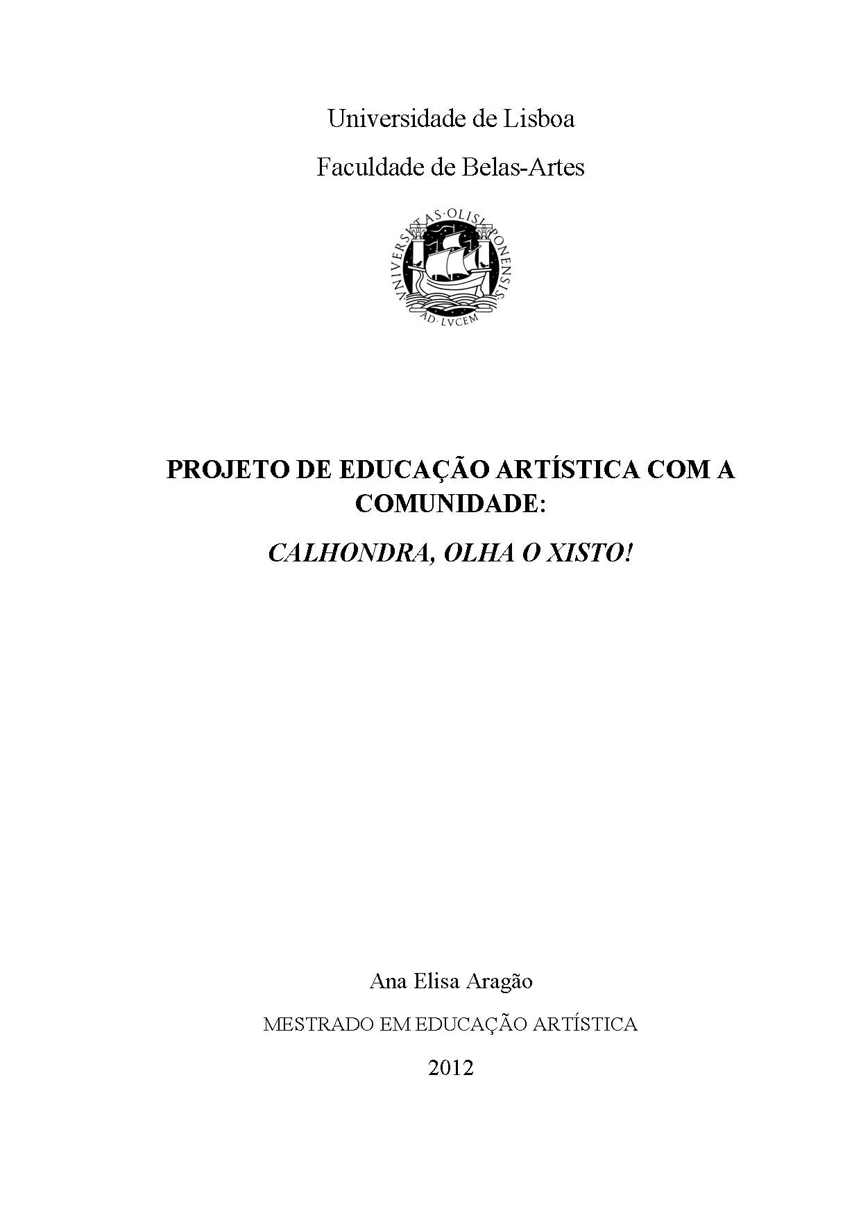 Tese de mestrado, Educação artística, Universidade de Lisboa, Faculdade de Belas Artes, 2013