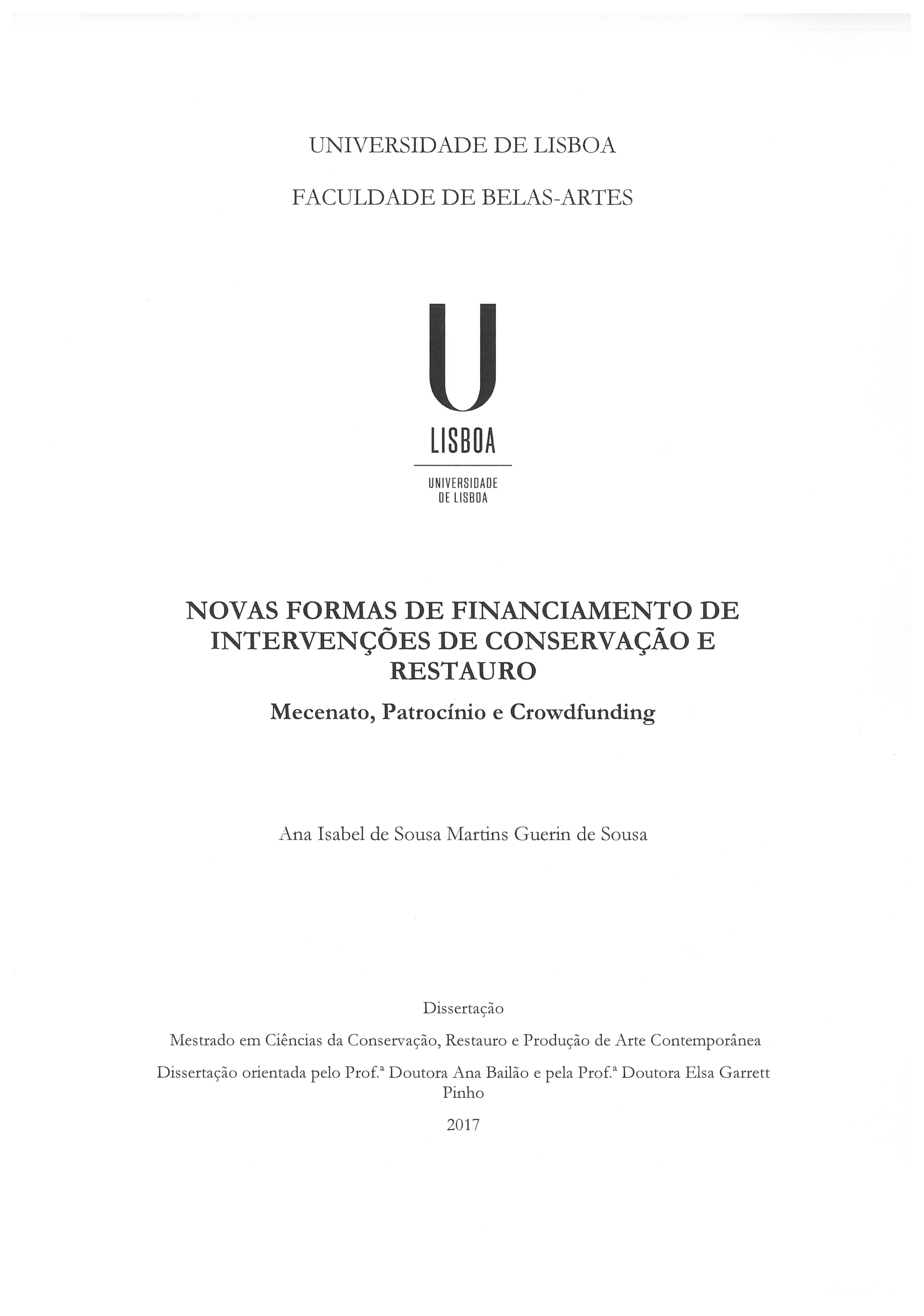 The present dissertation aims to study patronage, sponsorship and crowdfunding models as means for alternative financing of conservation and restoration interventions of national mobile and integrated cultural assets, which would traditionally be supported by the State and its institutions. The research begins by defining what is cultural assets, based on the base Law of Cultural Heritage (Law no. 107/2001, of September 8), and its legal provisions in order to contextualize them in this study. Given the scarcity of information on the conservation status of these cultural assets, a questionnaire was prepared, entitled "The role of conservation and restoration in Portuguese museums", in order to understand the necessities of national collections. This survey corroborated the deficiencies of conservation and restoration in museological collections, as well as the lack of human resources specialized in this field. The Portuguese population in the use of these financing models was also verified, in order to understand their viability and possible utility in solving the problem. Once again resorting to public inquiry, a new questionnaire of multiple responses was executed, entitled "New forms of financing for interventions for the conservation and restoration of cultural assets". After analyzing all the data collected, both from the point of view of museum deficiencies and public participation, the creation an exclusive platform to finance conservation and restoration interventions of mobile and integrated cultural assets in Portuguese territory, was proposed. The aim is to overcome the lack of investment in the area, which has contributed to the constant deterioration of cultural assets. This project, which we call the Heritage Support Platform (HSP), presents two distinct phases of implementation: the first is through crowdfunding, which has more media coverage, and the second, through the implementation of sponsorship and patronage projects that create a link between people / companies and institutions which hold cultural assets. HSP intends to be the first Portuguese crowdfunding channel which is exclusively dedicated to supporting conservation and restoration projects of mobile and integrated heritage, which simultaneously appeals to the Portuguese population's awareness of the need to preserve and protect their heritage