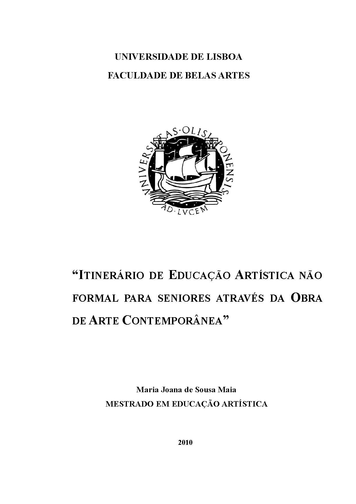 Tese de mestrado, Educação artística, Universidade de Lisboa, Faculdade de Belas Artes, 2011