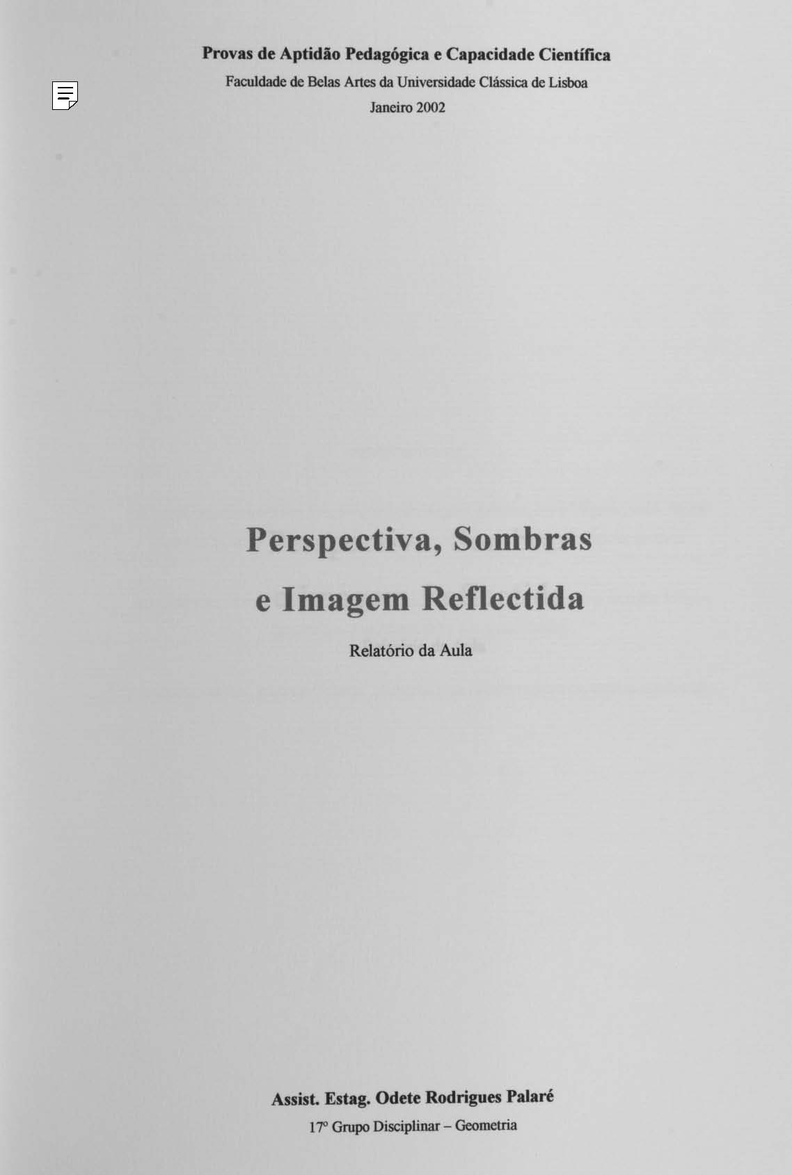 Relatório da Aula, entregue por ocasião da apresentação das Provas de Aptidão Pedagógica e Capacidade Científica, na Faculdade de Belas Artes da Universidade de Lisboa, 2002