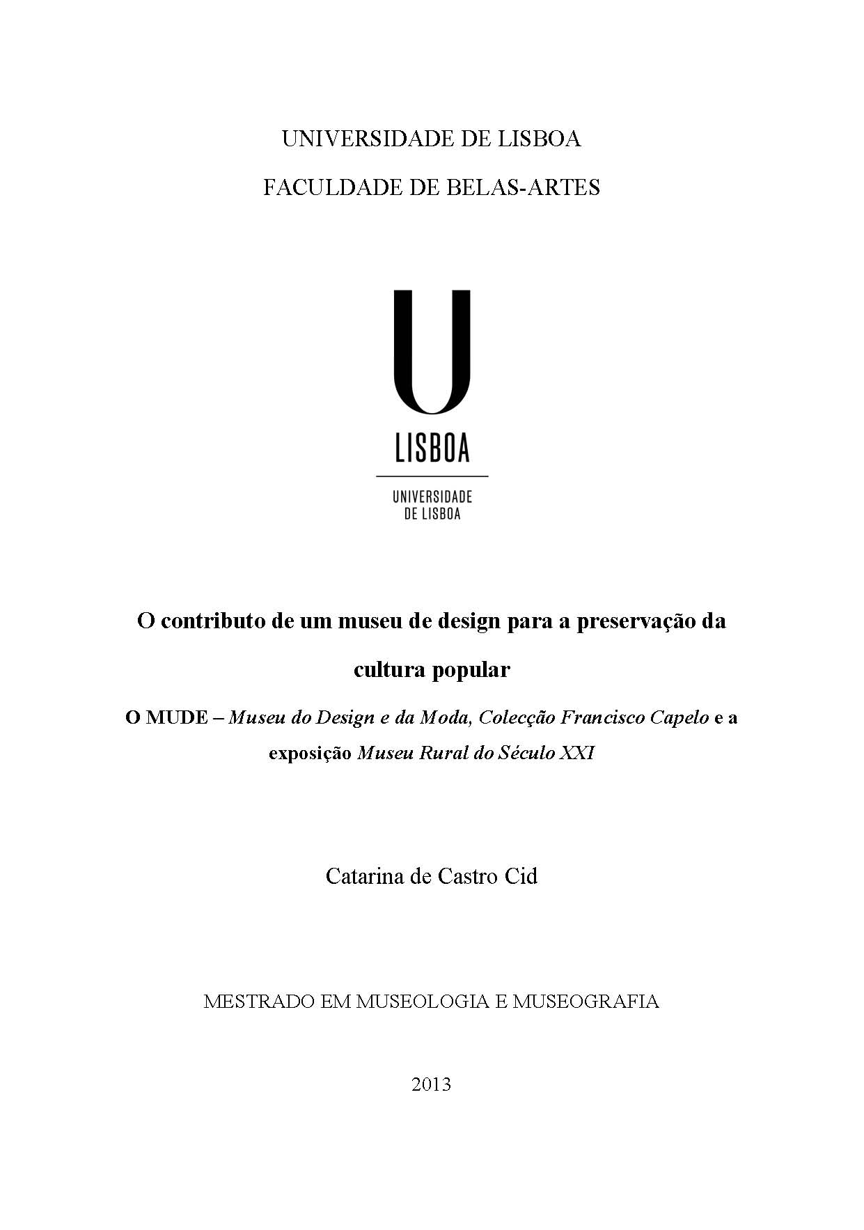 Tese de mestrado, Museologia e museografia, Universidade de Lisboa, Faculdade de Belas Artes, 2013