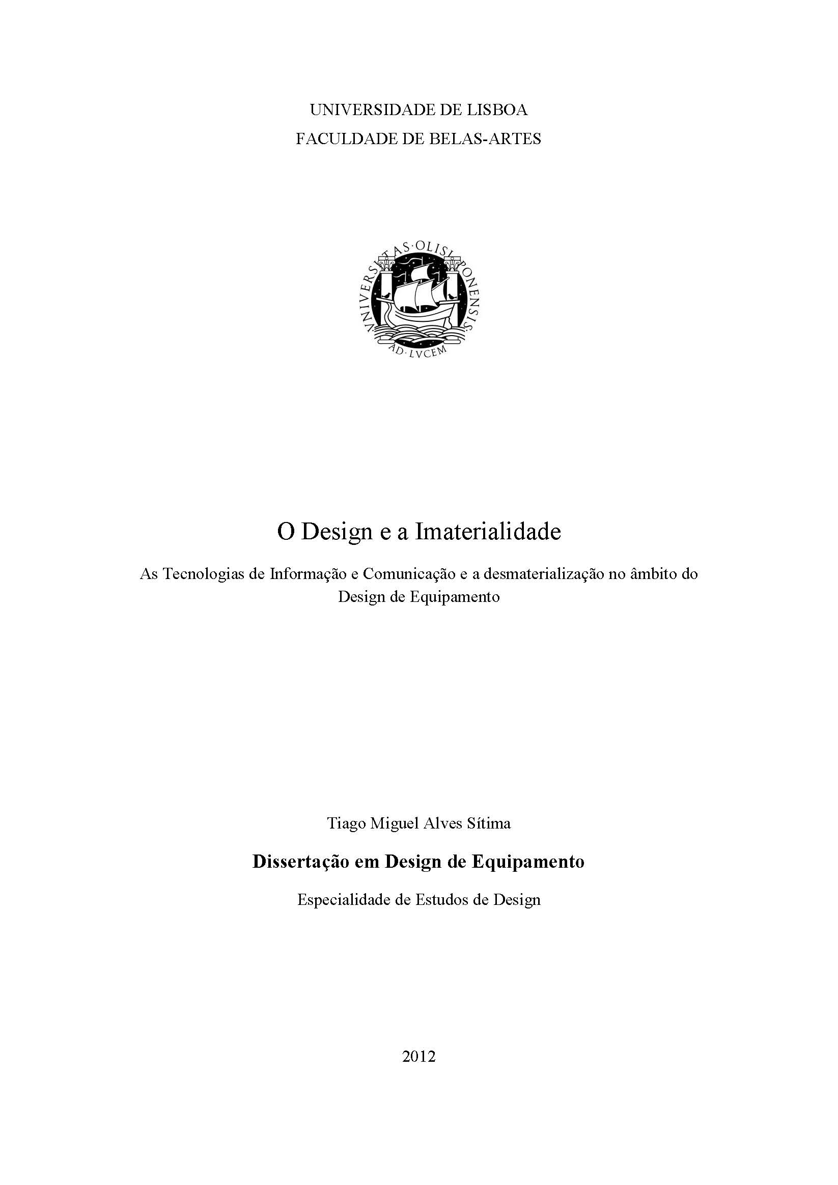 Tese de mestrado, Design de Equipamento, Especialidade em Estudos de Design, Universidade de Lisboa, Faculdade de Belas Artes, 2012
