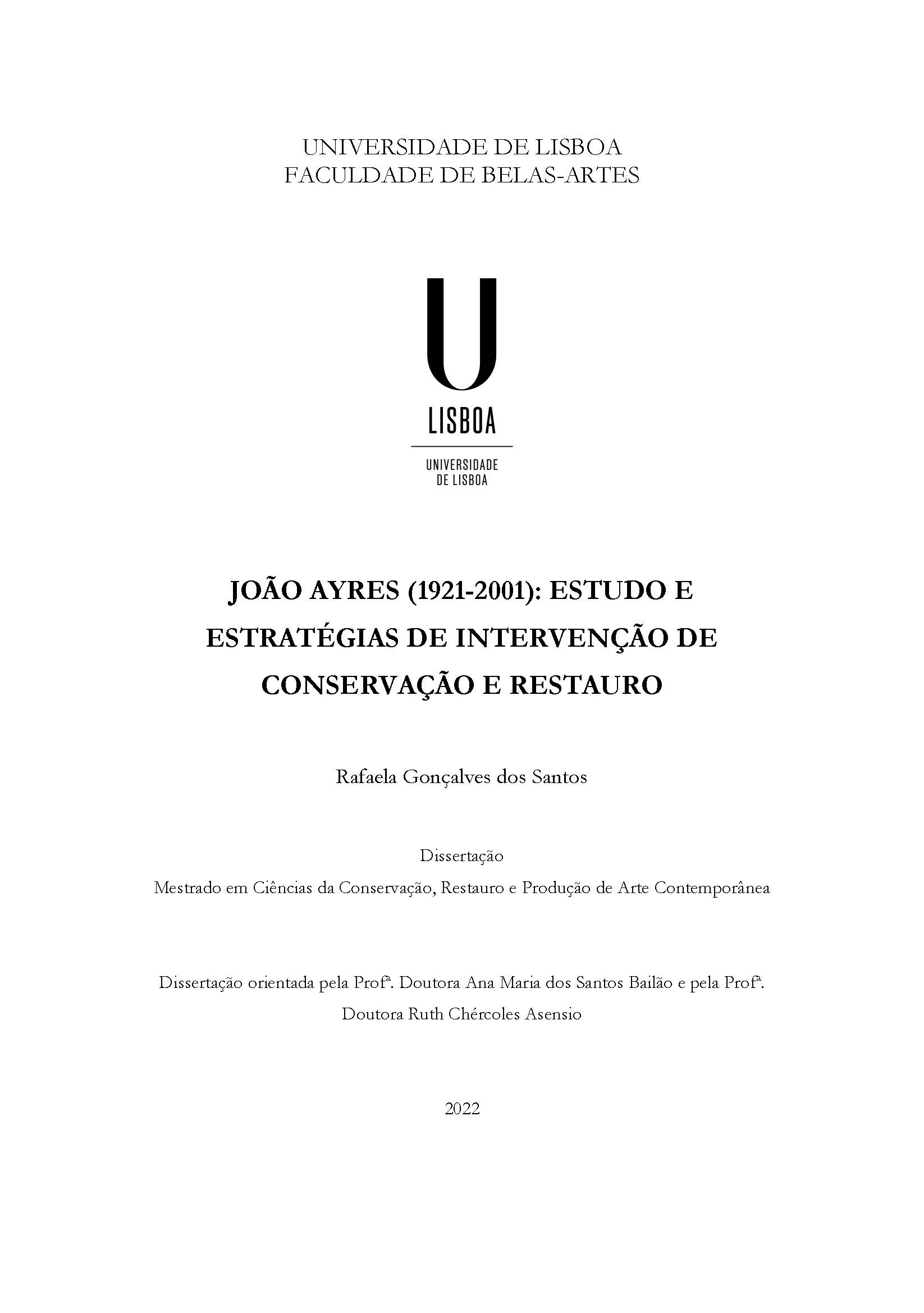 The present dissertation has as its theme the technical study and the respective conservation and restoration intervention of one of the works of the Portuguese painter João Ayres (1921-2001). Ayres had a vast artistic production, however his work as a contemporary painter has been barely studied. From the existing artworks, one painting on wood was selected, produced in Mozambique in 1948. The criterion for selecting was its state of conservation. In this case, the work was selected due to its advanced state of degradation. The constituent materials, construction techniques and intervention strategies were systematically analyzed. The investigation was phased. However, the different phases were related to each other, since the knowledge concerning the original constituent materials allowed, on the one hand, to understand the degradation processes of the works and, on the other hand, to acquire information for decision-making about the intervention methodologies. The knowledge acquired through the analysis of the artist's vast collection allowed an even more detailed understanding of the construction techniques used in the production of his artworks. The study regarding research strategies aimed to broaden our knowledge about each of the intervention stages, whether in the supports or in the pictorial layer, and therefore, they were defined after a bibliographic review of each of the treatments and respective materials. In this field, it is noteworthy the lack of specific bibliography for support treatments in plywood, and with this project it was intended to make known the different phases that encompass an intervention of this nature. The problem of support consolidation and restructuring stands out amongst the treatments performed throughout the intervention. For the consolidation of the support, which was in an advanced state of rot and infestation, it was intended to formulate a methodology capable of reestablishing the cohesion of the woody particles and conferring mechanical resistance to the support; in the restructuring, it was intended to apply an alveolar-shaped balsa parquet system, with the aim of reinforcing the entire structure, in order to reestablish the stability of the support and prepare the painting for layout and exposure