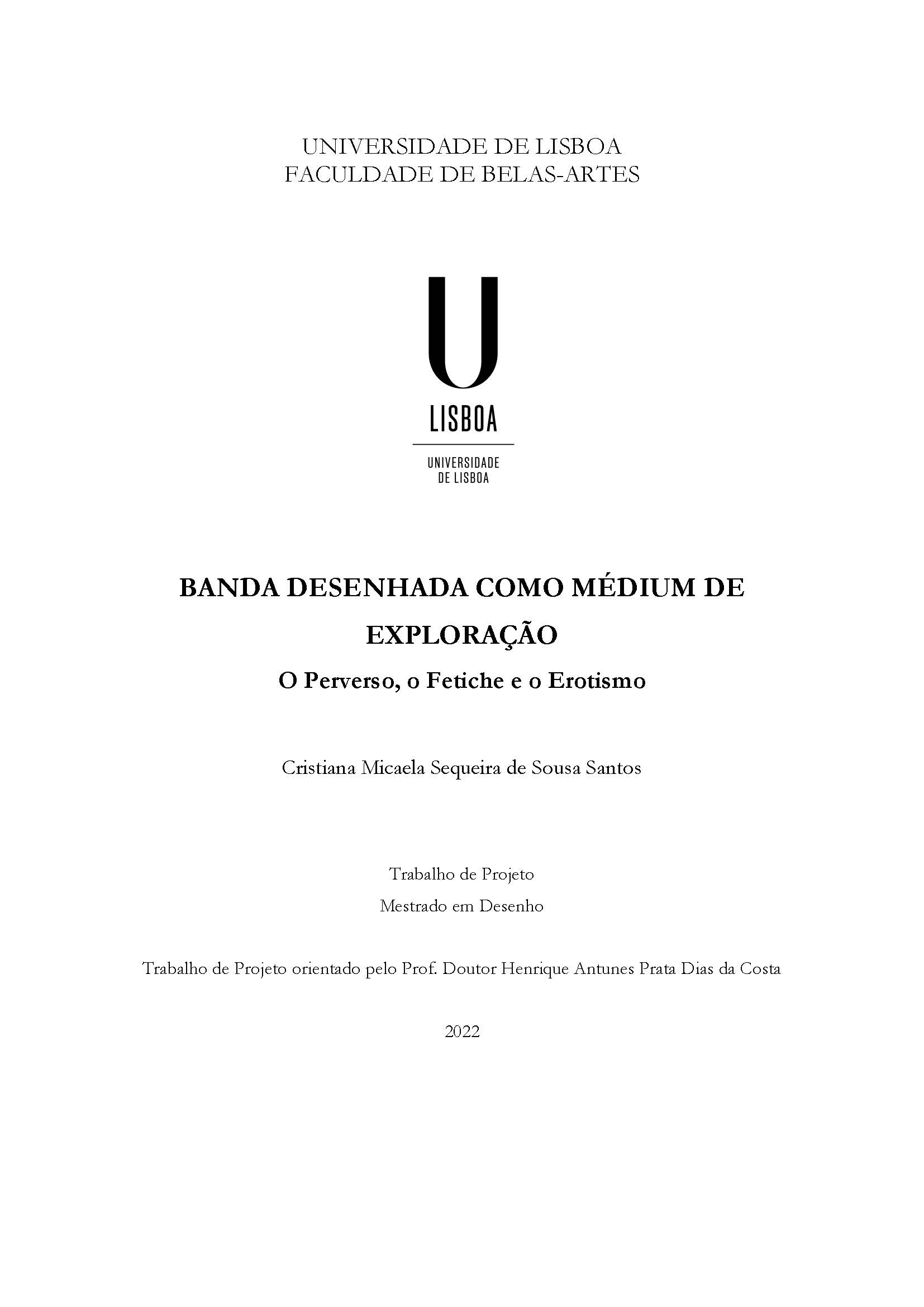In the Prohibited Book’s introduction, Luis Royo highlights the main goal his work is pursuing. More than being appreciated for its aesthetics and creativity, he wants it to be a mean to an end: to attain orgasm. Royo declares to assisting the reader in reaching their pleasure and sexual fulfillment, by using a collection of stories and illustrations of a sexual nature. It is on this premise that the present Project is based on. In this Project for the Masters in Drawing, an erotic work will be produced, namely a webcomic, that uses the plot and the image as means to explore eroticism, fetish and perversion. Consequently, it will be divided into two parts: the theory behind the work and the webcomic itself. The former aims to create a basis for any creator of erotic content to do so with knowledge and quality. The History of Erotic Representations and Human Sexuality are the key subjects approached, whose study and topic analysis will have a direct impact on the creation of the webcomic. The latter part of the Project follows the process of the erotic work, from the creation of the original storyline and characters to the final product, a Smut webcomic entitled At Your Mercy. This Project is directed at all those who are interested in Erotic Literature and Art – with an emphasis on the Asian comics – and human sexuality.