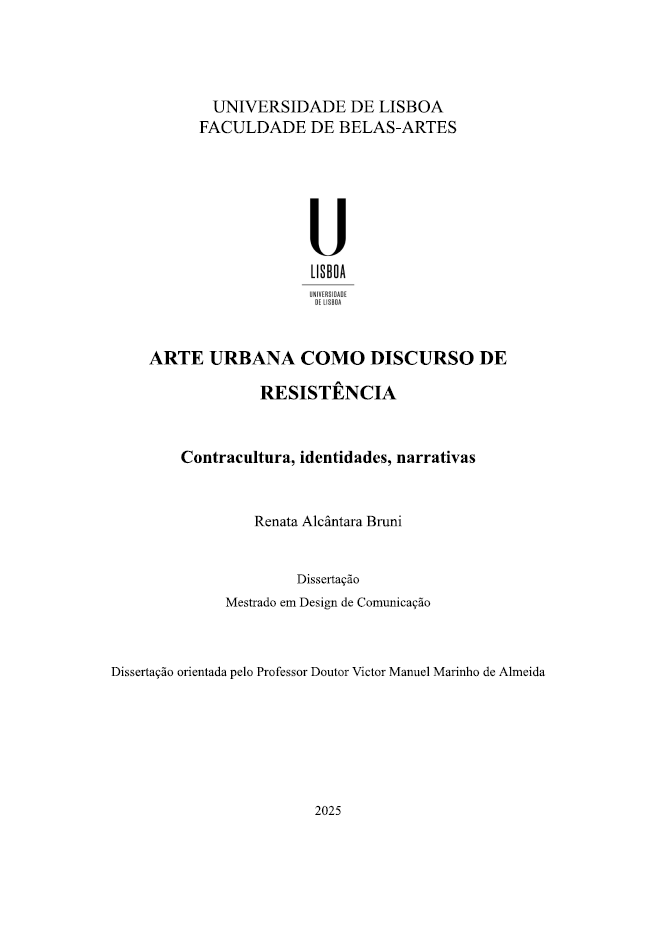 This dissertation investigates urban art as a discourse of resistance, understood as an aesthetic, cultural, and political practice that transforms public space and gives visibility to marginalized narratives. By occupying walls and urban surfaces, urban art communicates messages of dissent, reinforces collective identities, and proposes new modes of symbolic appropriation of space. The main objective of this work is to understand whether activist urban art goes beyond a merely aesthetic function and actually acts as a critical and mobilizing tool. To this end, specific goals were defined: to analyze the visual elements of the artworks, identify recurring themes, relate them to sociopolitical contexts, and assess how different audiences interpret and receive these messages. The research adopts a mixed methodology that combines ethnography, content analysis, and online surveys. Urban artworks found in Lisbon and Almada were classified into five thematic categories - Metalinguage, Human Rights, ldentity, Politics, and Territory- and evaluated using qualitative indicators (Curiosity Trigger, Nonconformity, Artwork in Public Space, and Message Effectiveness) and quantitative ones (Linguistic Features, State of Conservation, Scale, Color, and Technique). The results indicate that categories such as Politics and Human Rights display greater communicative effectiveness, particularly when they combine recognizable symbols, strong colors, and large scale. Meanwhile, categories such as Territory and Metalinguage showed less impact, highlighting the influence of context and authorial intent on message clarity. lt is possible to conclude that urban art of resistance asserts itself as a hybrid and multidisciplinary practice, capable of transforming the cityscape, fostering critical reflection, and contributing to the construction of collective identities, resistance movements, and a sense of belonging.