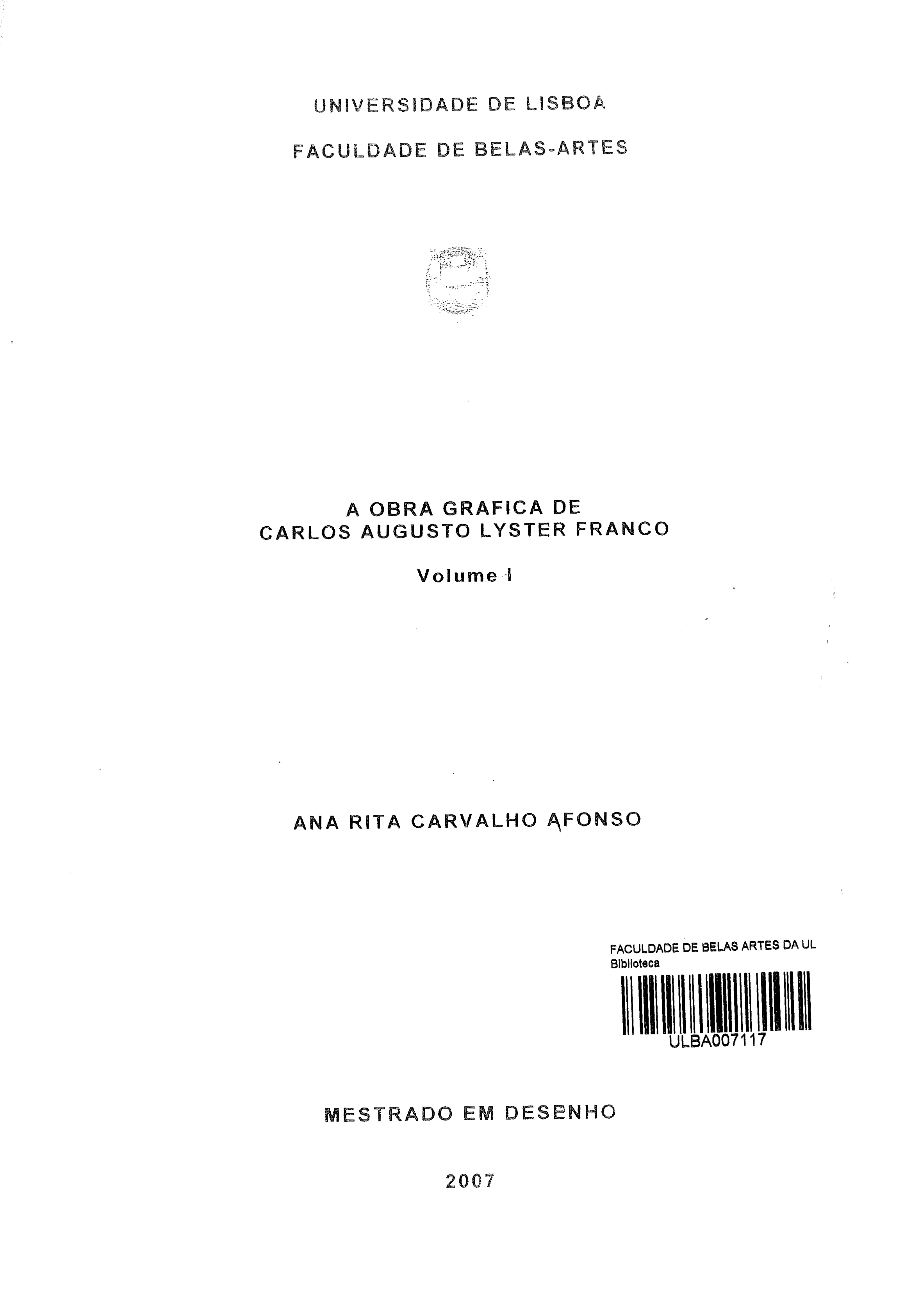1º Vol.: lll, 174 f. ; 2º Vol.: Anexo de textos. - 100 f. ; 3º Vol.: Anexo de imagens. - 167. Apenas disponível para consulta na Biblioteca da FBAUL com a cota CDA 123